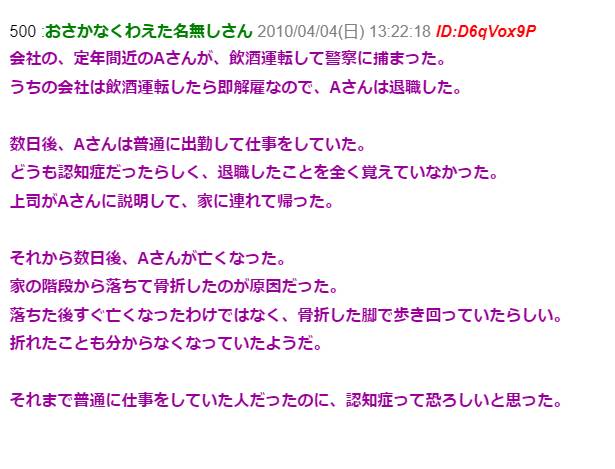 定年間近のAさんが飲酒運転で警察に捕まった→会社は即解雇。数日後、Aさんが出勤し仕事をしていたが上司が説明し帰宅させた。さらに数日後Aさんは亡くなった。その理由が怖い…