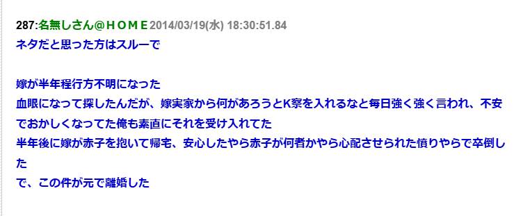 妻が行方不明になり血眼になって探したが、義実家には「何があろうと警察を入れるな」と毎日強く言われ従った。半年後に妻が赤子を抱き帰宅したのだが…