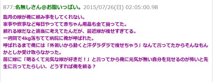 臨月の嫁が俺を頼ってくれない。家事も毎日完璧にこなしていて、素敵な嫁だなーなんて呑気に思ってたある日。俺は病院に呼び出され、衝撃の事実を知ることに…。